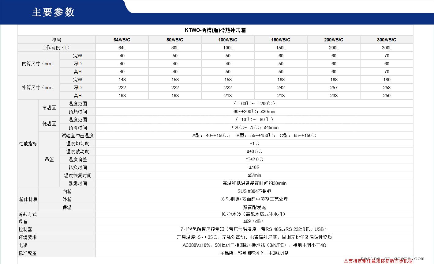 - 科胜两槽式冷热冲击试验箱KTWO-150A/B/C